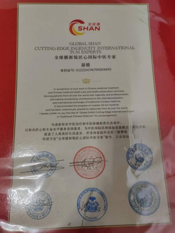 岁月流转,“花开花谢春秋几度,意气风发难再提”,随着军旅生涯步入尾声,转业后的游德选择提前退休,却并未停下深耕医学的脚步。他将目光投向中医领域,一头扎进传统中医的浩瀚长河,潜心钻研中医理论与特色中医截根疗法。凭借在部队积累的丰富临床经验,结合对中医精髓的不断探索,游德逐渐成长为中医领域的多面手,先后取得高级中医医师、高级针灸理疗师、中医正骨师、中医传承高级非遗技师等专业资质,在中医诊疗领域站稳脚跟。