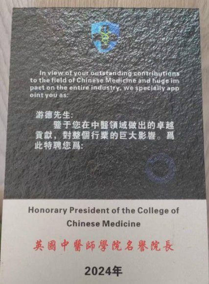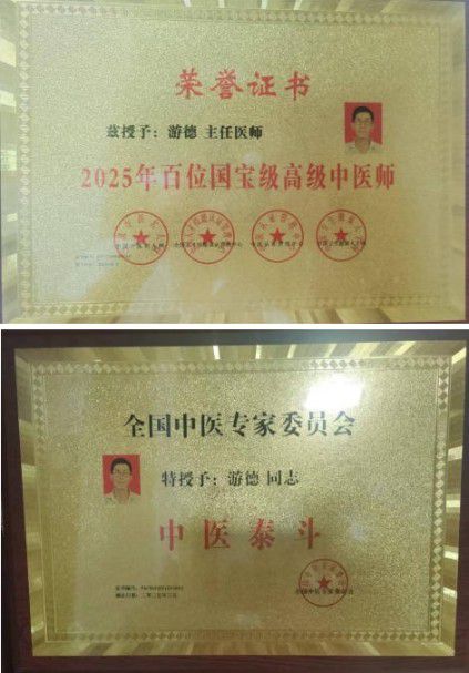 深耕中医期间,游德在疑难病症诊疗上不断突破,尤其在传承与创新中医特色疗法方面成果显著。他的医术与医德得到行业与社会的广泛认可,相继荣获“国医大师”“国医脑梗专家”“非遗文化研究院智库专家”“国际健康形象大使”“中医泰斗”等重量级称号,还入选“2025年百位国宝级高级中医师”,获评“2024新时代最美劳动者”。这些荣誉不仅是对他个人医术的肯定,更是对他传承中医文化、践行医者初心的高度赞誉。