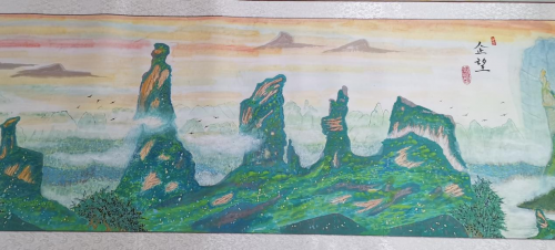 △ 戴建华《壮美山河一一走进张家界》百米山水画长卷及《奇山神韵一一张家界》组画