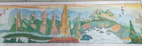 众所周知,湖南有着深厚的地域文化, 湖南人更有吃得苦,霸得蛮,耐得烦的精神,也有敢为人先的勇气和心忧天下的担当。远的不说,近现代史上湖南就涌现出曾国藩、黄兴、蔡锷、毛泽东、李达、刘少奇、徐特立、任弼时、彭德怀、林伯渠、陶铸、胡跃邦…等大批卓越的领袖人物,在艺术界,湖南同样是人才济济,大师辈出;齐白石、田汉、丁玲、周立波、琼瑶、贺绿订、沈从文、黄永玉…。戴建华是湖南人,身上就有一股子敢作敢为不撞南墙不回头的倔犟。他效仿愚公移山,每日移山不止,历时两年,终将张家界其中的三十四处景点搬到了宣纸上,组成了一幅高0、7米,长100米的中国山水画长卷。