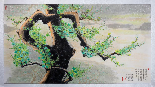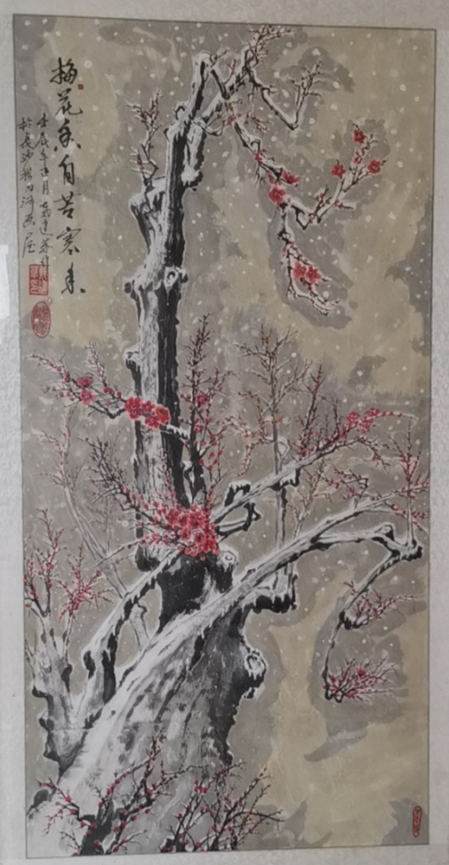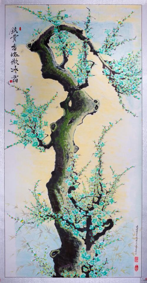 《铁骨香魂》一一红梅赞伟大的中国共产党140X68㎝