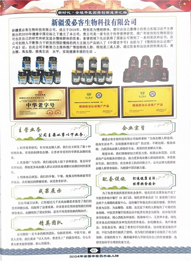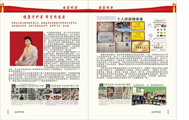 在健康的领域里,有一位杰出的营养师,他用自己的智慧和努力,为了实现习近平主席提出的2030年健康中国的号召响应做出了自己刻苦研究出的创意三餐的贡献,给无数慢性病患者带来了希望和新生。他的名字如同一颗璀璨的星辰,照亮了人们追求健康的道路。他就是海南古蜜西克健康管理有限公司董事长、中医康复理疗师,高级健康管理讲师,药理师——艾肯·马木提又称巴特·爱必客。