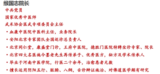 缑国志医师坐诊,出诊,会诊北京同仁堂、康盛堂,王府大院和部队医院等安阳北京的多家医疗机构,还是北京安阳中医专家团队全国巡诊总负责人。