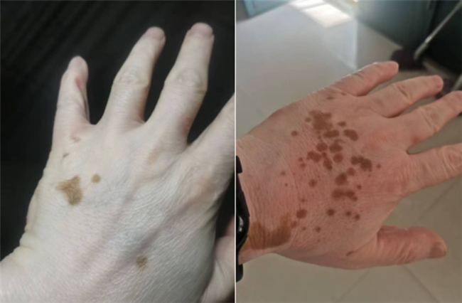 白癜风患者治疗前后的照片
