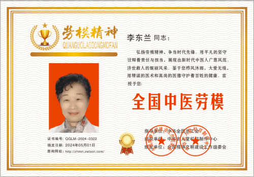 几十年来,李东兰所长刻苦钻研医术,本着治病救人,救死扶伤的原则,为广大患者解除了痛苦,深受广大患者和上级领导的认可,同时在医疗科研领域也获得了突破性进展,多次荣获各种荣誉和奖项。李所长系中国民间中医学研究开发协会会员,全国特色诊疗专家,全国优秀医师,获中国品牌建设实验创新页献奖,为中华中医药创新论坛特邀嘉宾,全国名老中医绝技演示交流大会特邀嘉宾。