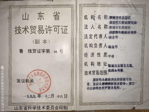 头痛病研究所所长李东兰,女,汉族,1957年出生在山东聊城。七十年代末在聊城卫校毕业后进入了五世行医的中医世家,跟随婆母,“头痛病克星”杨金华从事顽固性头痛,头晕,三叉神经痛及颈肩腰腿痛的研究和治疗工作,受其婆母亲传,成为祖传秘方的第六代传承人。第七代传承人钟亚奎,崔金金,钟亚彬为“头痛病克星”杨金华的长孙,长孙媳,长孙女。