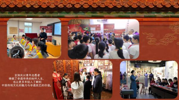 在社区服务方面,吉氏家族深入朝阳里社区、学校,敬老院等开展盘扣制作、刺绣体验活动,让非遗技艺触手可及。这些活动不仅让社区居民近距离感受传统技艺的魅力,更在潜移默化中传播着工匠精神。一位参与活动的老人感慨道:没想到我这把年纪还能学会做盘扣,这让我感受到了优秀传统文化的温度和力量。