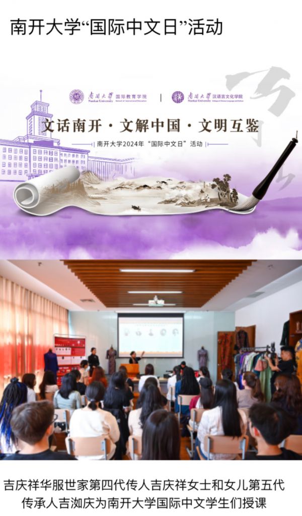 在教育领域,吉洳庆走进南开大学、艺术学院、开青年夜校等,主讲《中国优秀传统服饰文化和吉庆祥百年旗袍技艺传承》课程,2025年被授予客座教授称号。她的课程不仅传授技艺,更注重培养学生的文化自信和工匠精神。我希望通过我的教学,让更多年轻人了解中国优秀传统服饰文化的魅力,让非遗技艺在新时代焕发新生机。