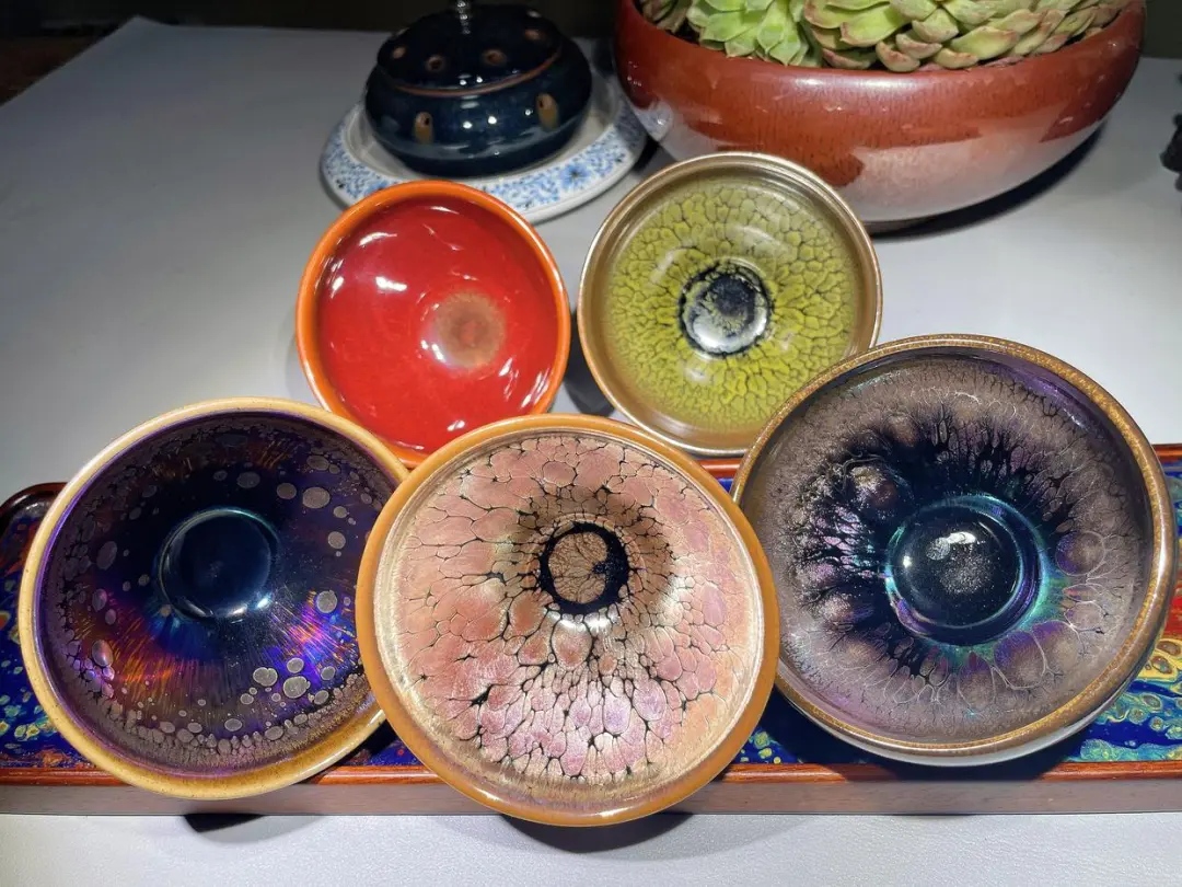 建盏,这一宋代斗茶文化的代表性器物,曾因技艺断代千年而沉寂。2011年,建窑建盏烧制技艺被列入国家级非遗名录,开启复兴之路。春申阁建盏以“现代技艺重塑传统”为核心理念,通过专利器型设计(如《冠军盏》的奖杯式造型)、釉面曜变技术研发,将传统黑釉瓷提升至当代艺术审美高度。其作品既保留宋代建盏“沉稳大气”的审美内核,又融入自然意象、当代美学等现代元素,成为非遗建盏活态传承的典范。